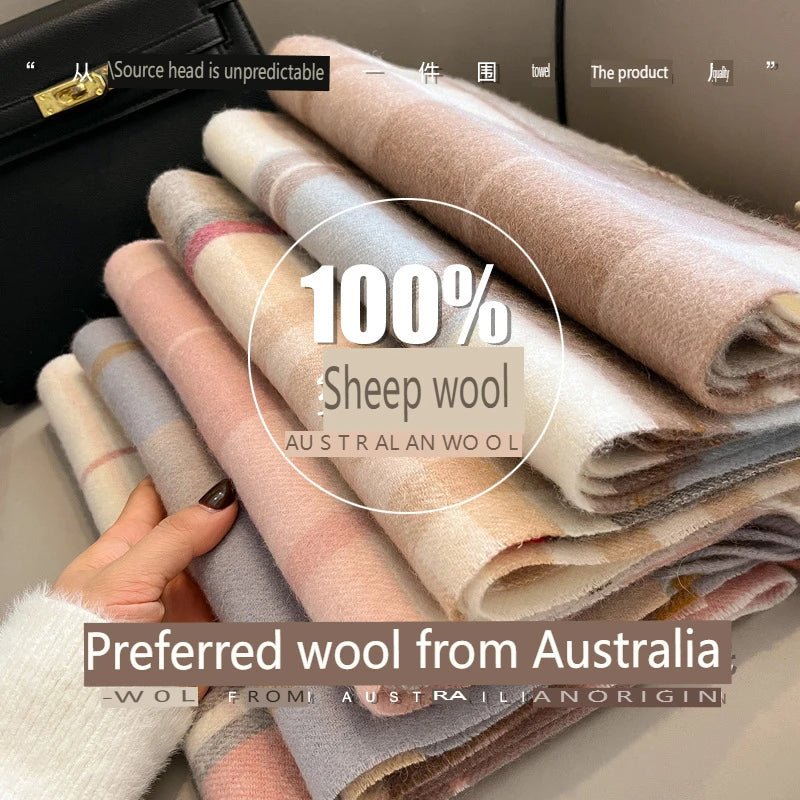 100% Wool Women Scarf Autumn Winter Vintage Preppy Style Plaid Wrap Scarve Pashmina Mujer Femme Foulard Bufanda Shawl Unisex Men
