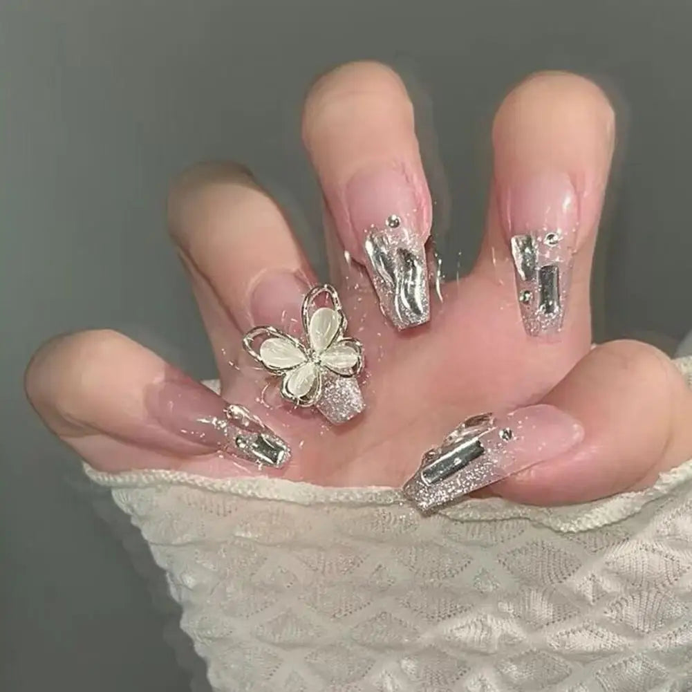 Constructed from premium, high-quality plastic, these nails ensure durability without compromising comfort luxury. They are engineered for an easy application that guarantees long-lasting wear, whether for daily elegance or special occasions. The luxurious details include: