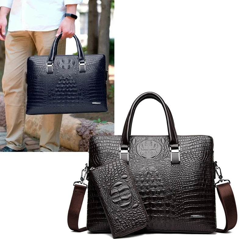 Rooted in expert craftsmanship, each bag showcases a refined design inspired by classic crocodile leather patterns, meticulously constructed to meet the highest standards of quality. The artistry involved in shaping its elegant contours reflects a rich heritage of leatherworking excellence, bringing sophistication to your everyday business attire.