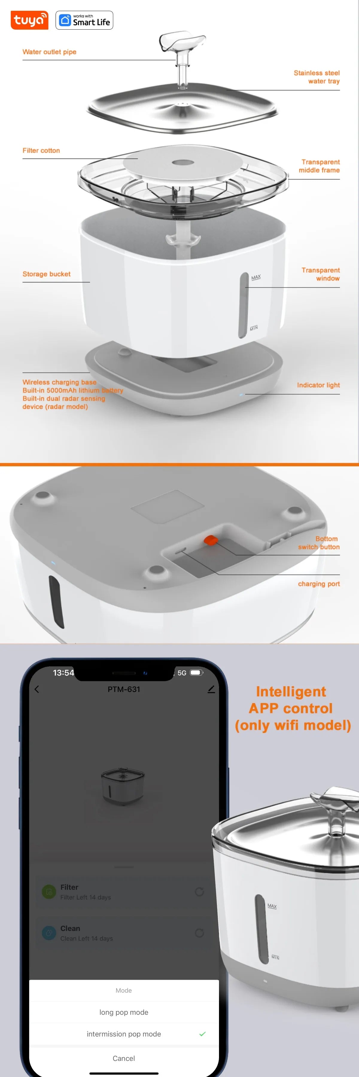 - Innovative Tuya smart app control allows you to monitor and adjust your pet’s hydration from anywhere in the world, blending convenience with peace of mind.
