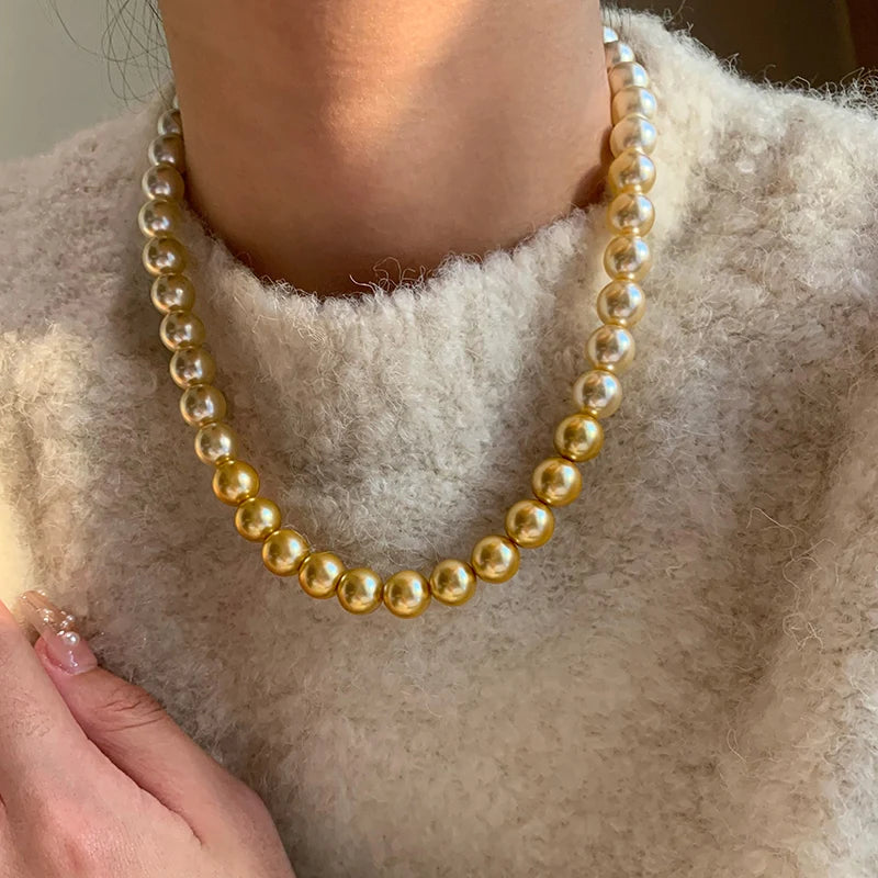 French elegant white gradient champagne pearl bead necklace for women's luxury accessories collarbone chain 2024 fashion jewelry