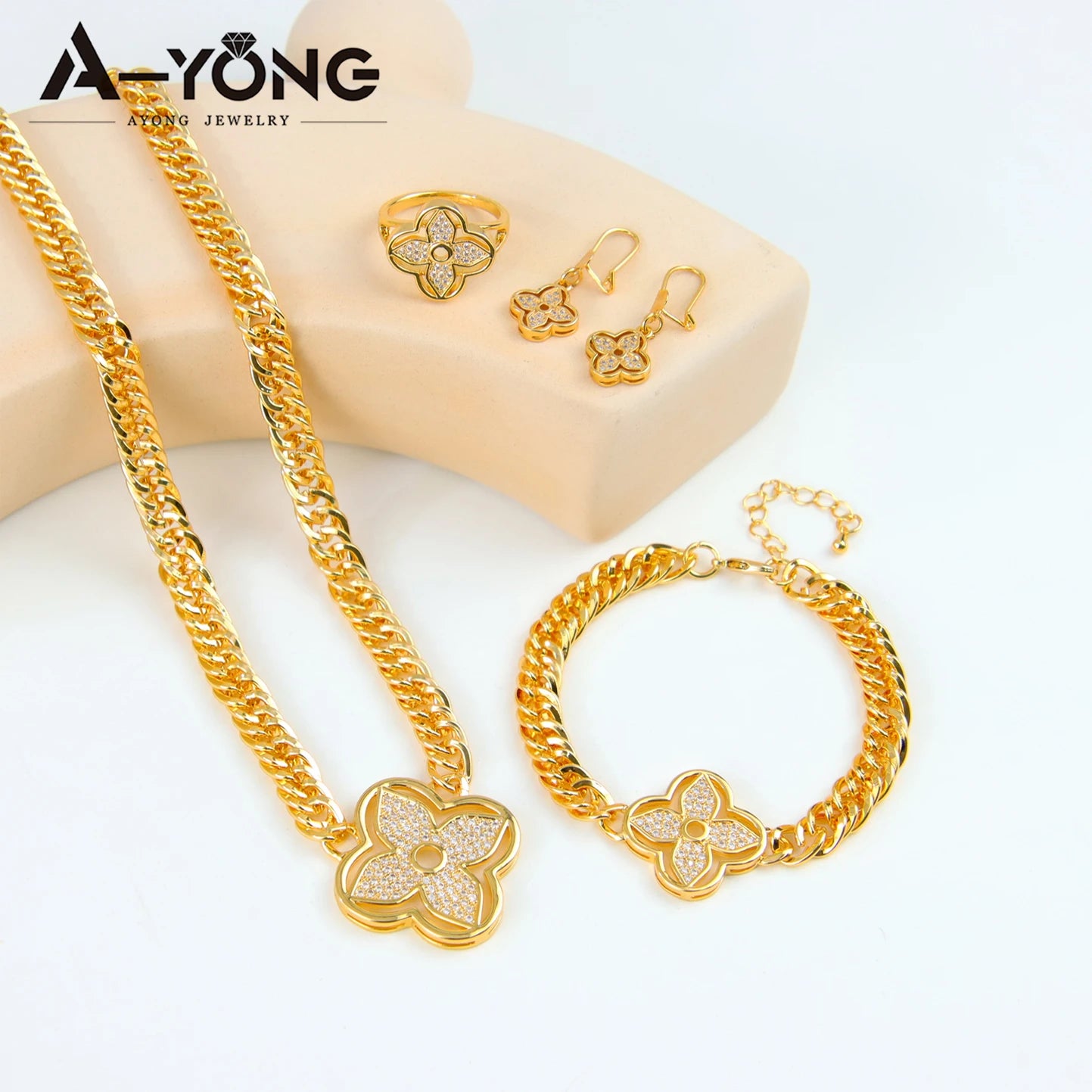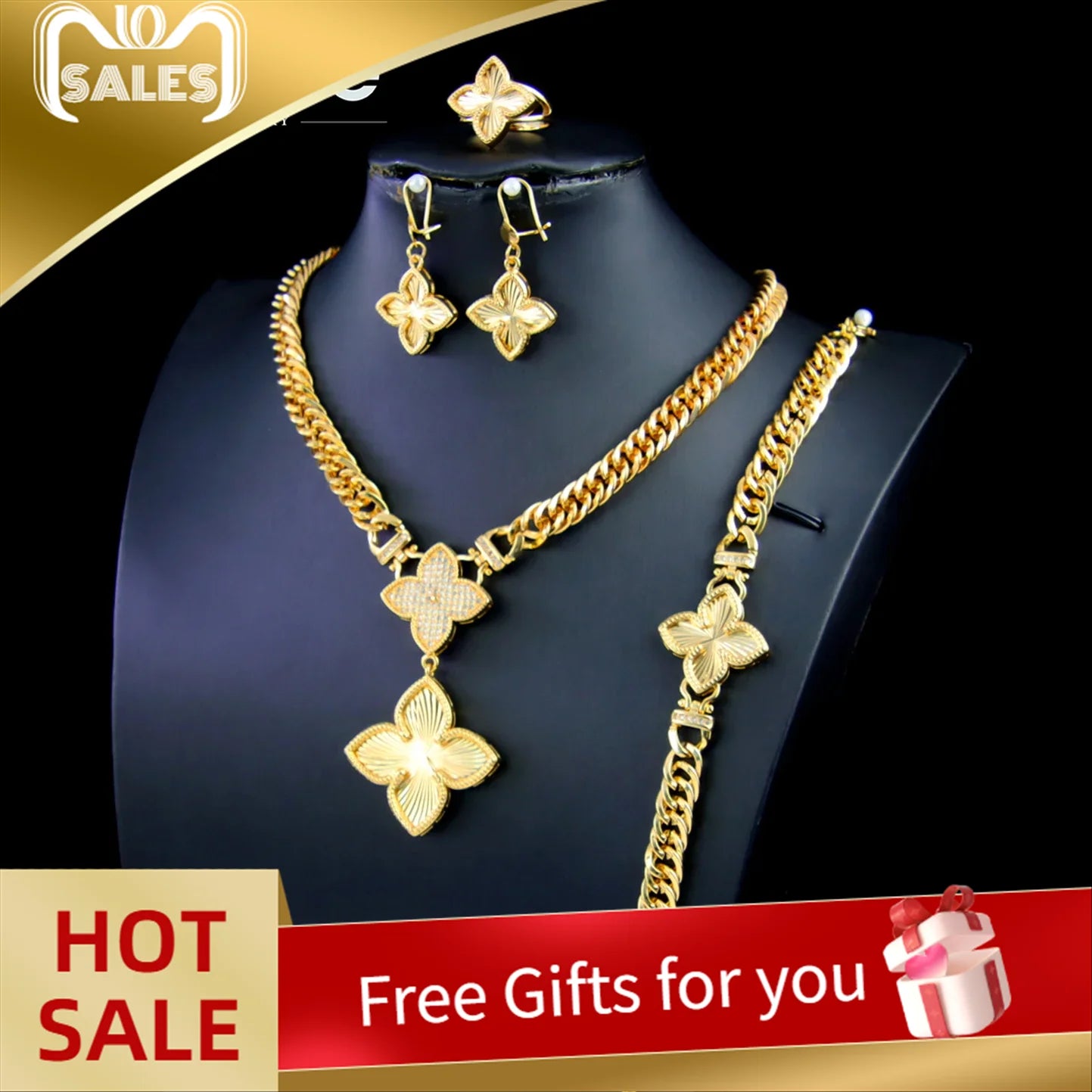 Italian Jewelry Set 21k Gold Plated Zircon Dubai Luxury Necklace Bracelet Earrings Ring Sets Women Wedding Birthday Party Gifts