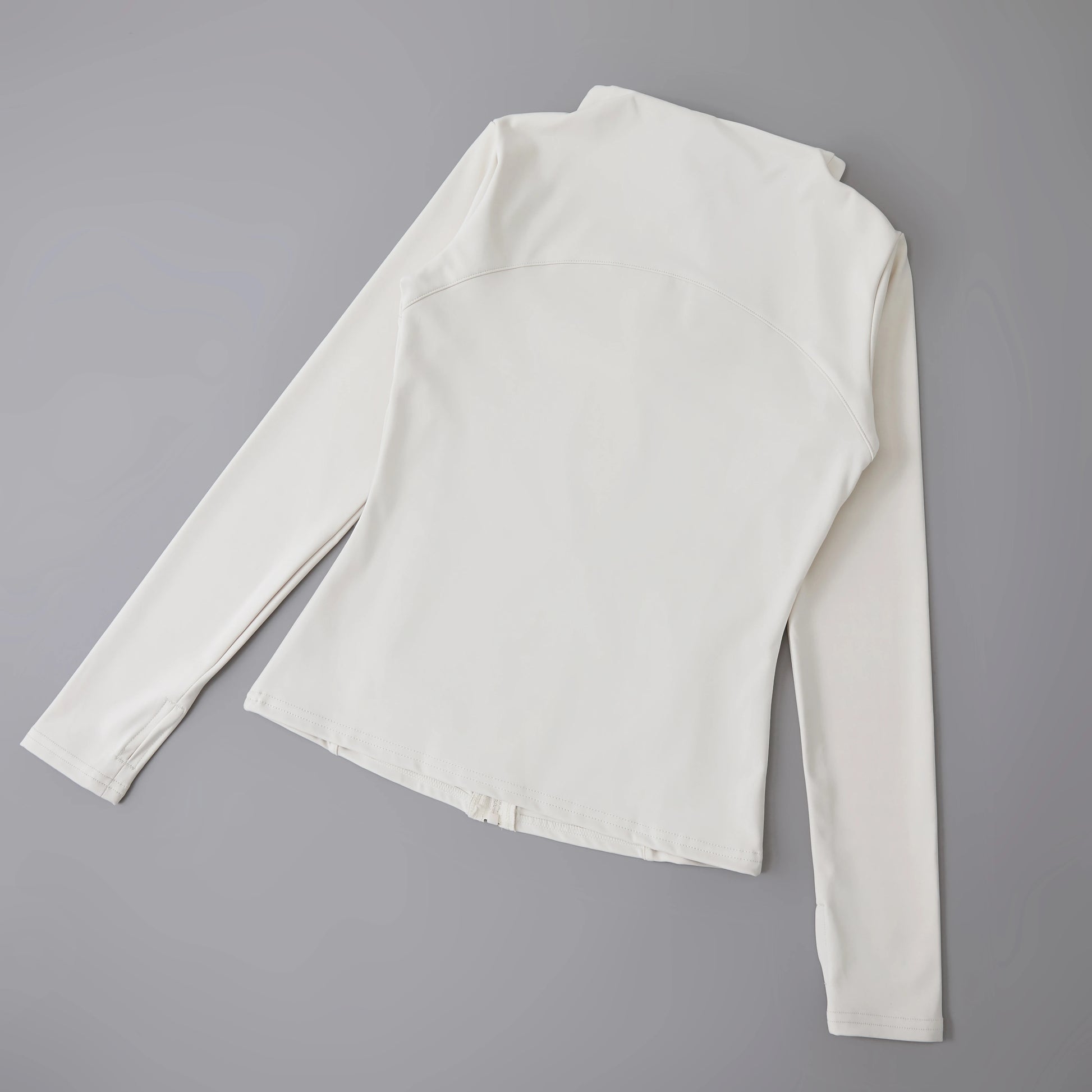 Constructed from premium polyester and spandex, this yoga outerwear offers a breathable, flexible fit that moves with your body. The high-quality materials guarantee softness, stretch, and resilience, making it a reliable companion for your workouts and everyday wear. Its solid pattern and turtleneck collar contribute to a streamlined silhouette, combining contemporary trends with timeless appeal.