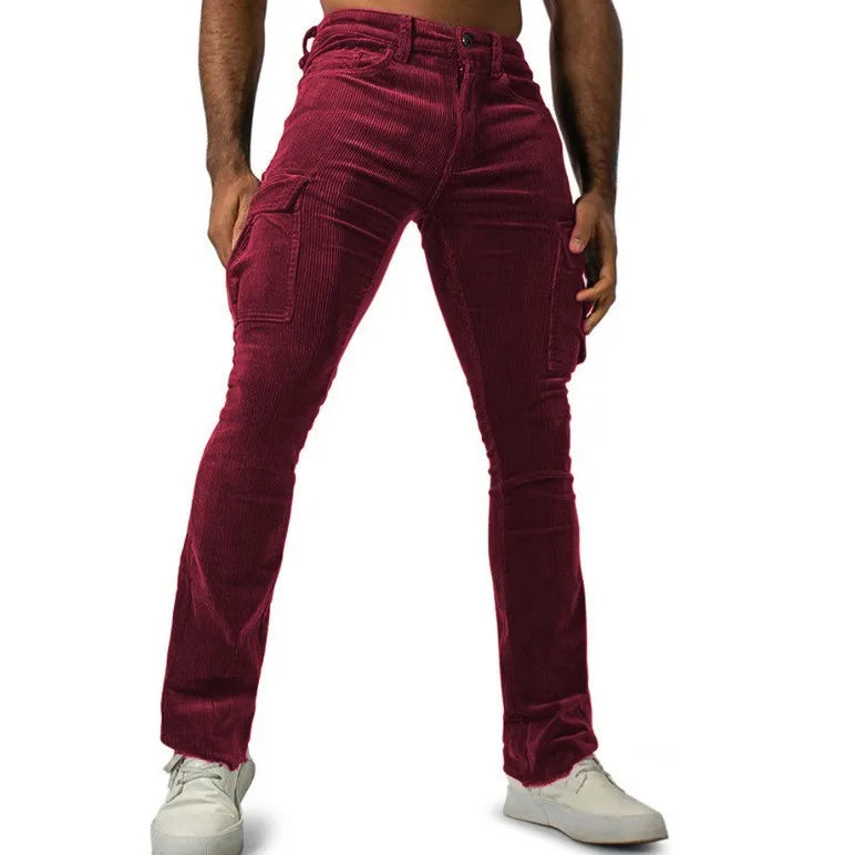 Men's Stretch Work Pants with Multiple Pockets Slim Fit Running Pants, Corduroy Casual Pants Breathable Street Style and Warm