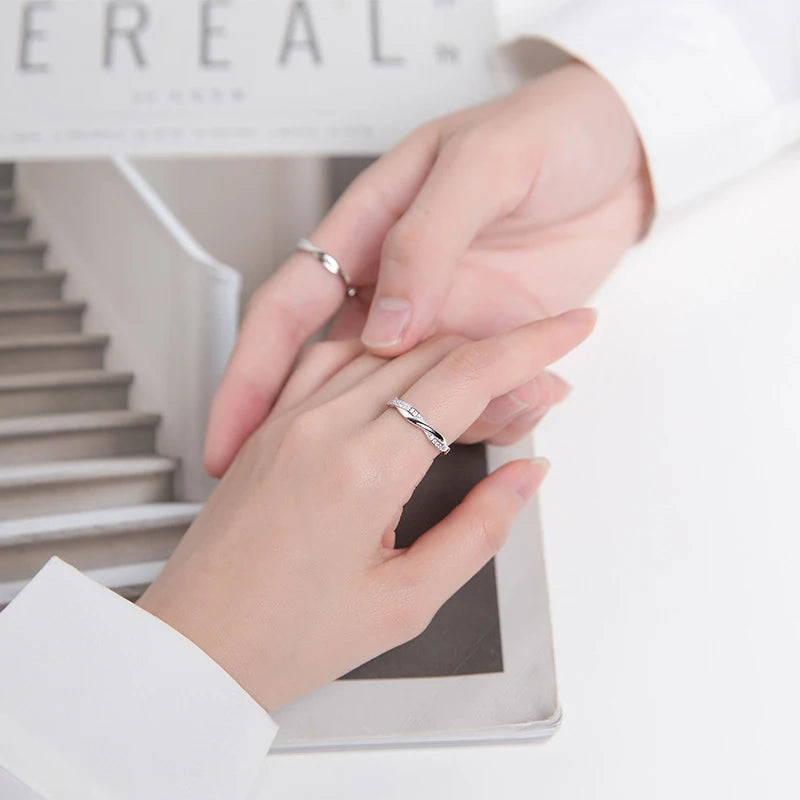 Luxe Engagement Ring for Women Men 925 Sterling Silver Shining Zircon Adjustable Open Ring Fine Jewelry Bijoux