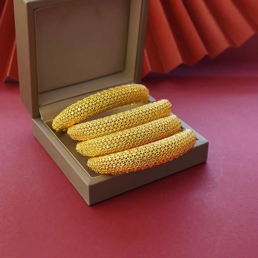 Saudi Arabia Jewelry Dubai Bangles for Women 4pcs/Lot Indian Gold Plated Bracelets Ethiopian Wedding Bridal Jewellery Gifts