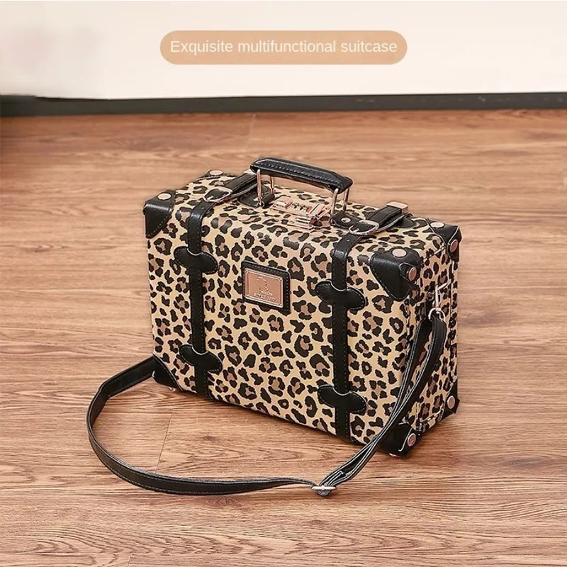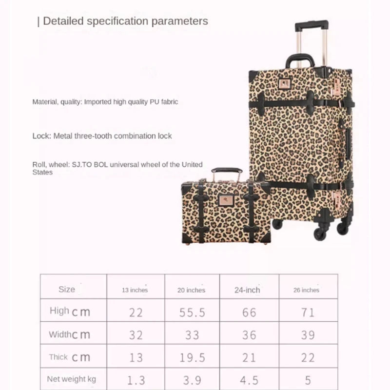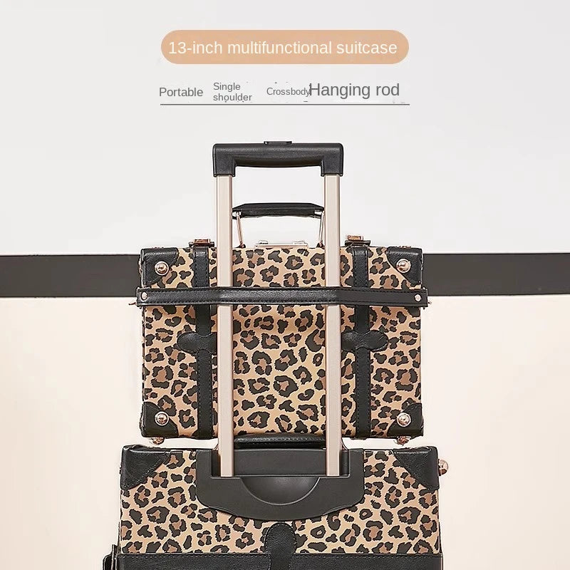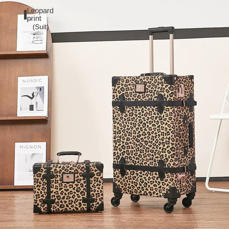 Trendy Retro Luggage Women's Roller Trunk Leopard Print Leather Suitcase 20" Boarding Box Set Waterproof Password Suitcase