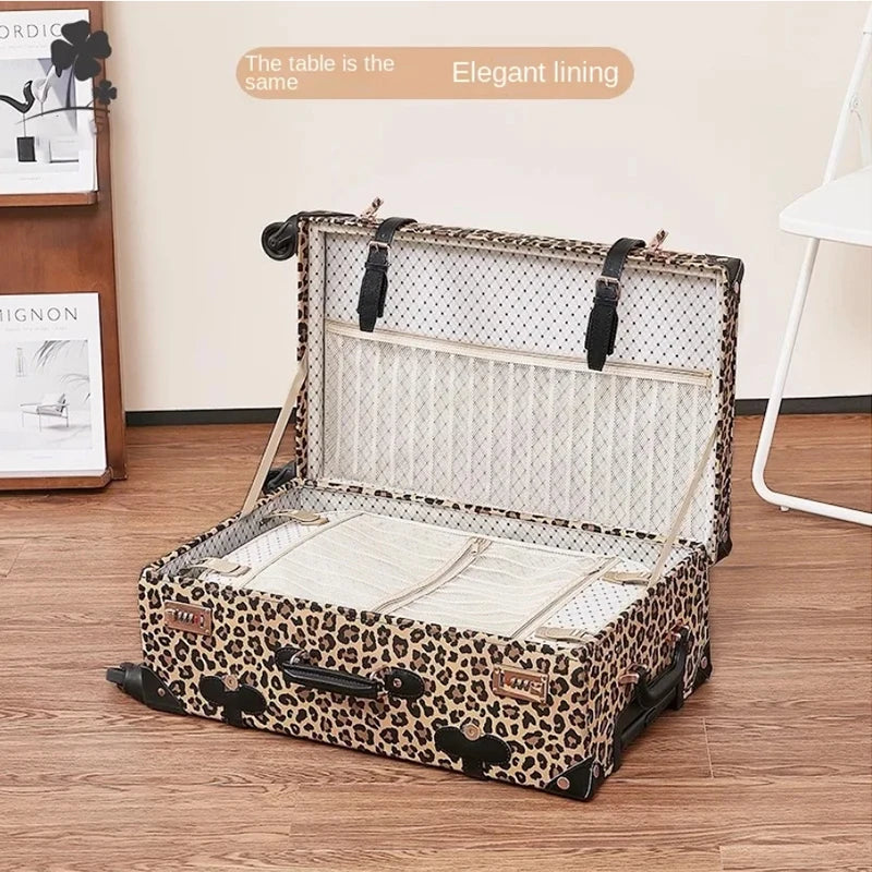 Choose the Trendy Retro Luggage Women’s Roller Trunk Leopard Print Leather Suitcase 20" Boarding Box Set Waterproof Password Suitcase and travel with unparalleled confidence, style, and exclusivity.