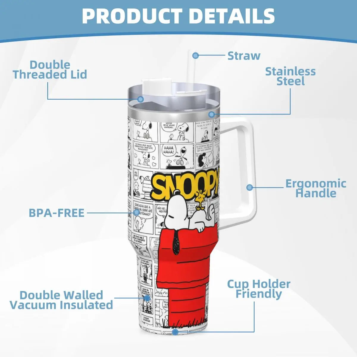Tumbler Hot Drinks Water Bottle Portable Stainless Steel Coffee Mug A Peanuts Graphic Travel Mugs Cup