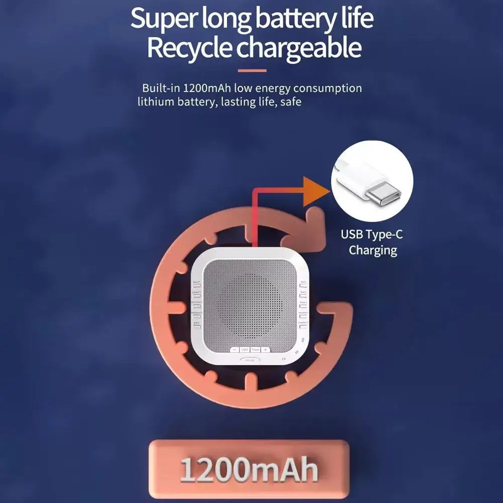 Constructed from premium materials, this device boasts a sleek, compact design that fits seamlessly into any nursery, bedroom, or travel bag. Its rechargeable battery ensures convenience and portability, letting you enjoy therapeutic sound wherever you go.