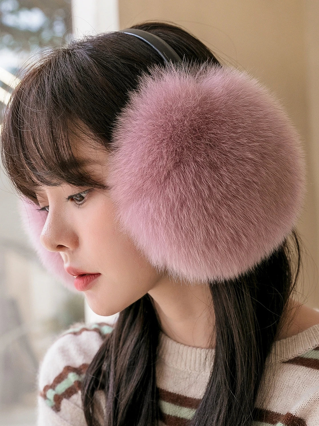 Winter Women Warm Real Fox Fur Earmuffs Girl's Earlap Ultra Large Ladies Plush Earmuff Luxury Ladies Fox Fur Earmuffs
