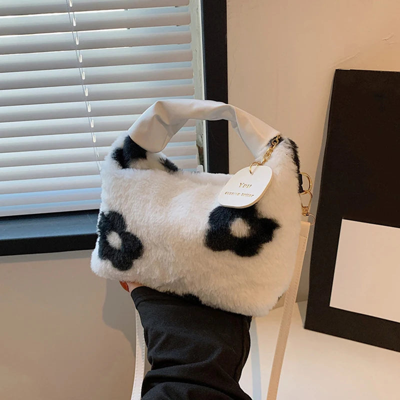 Experience unparalleled sophistication with our Women Faux Fur Plush Handbags, designed exclusively for the modern woman who values both style and comfort. This half-moon hobo bag, featuring a ruched handle and a compact silhouette, embodies casual elegance with a luxurious twist, making it a true fashion must-have.